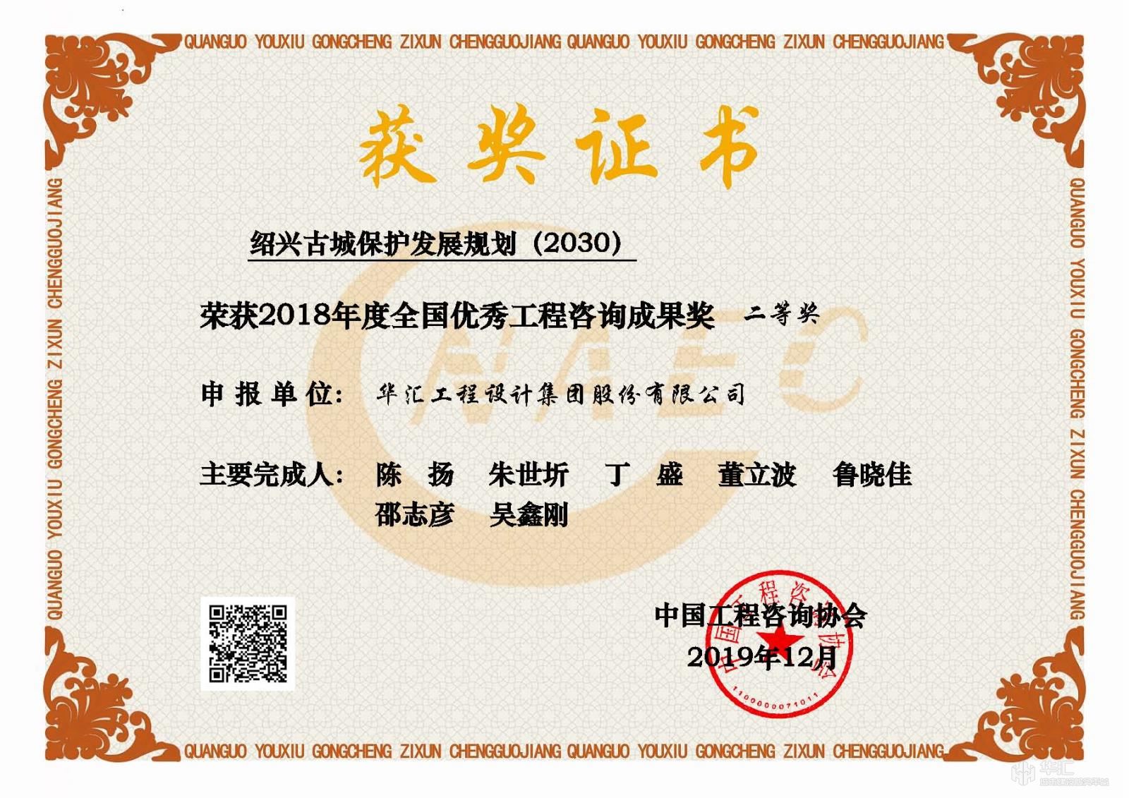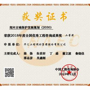 《绍兴古城保护发展规划》荣获2018年度全国优秀工程咨询成果二等奖,荣获2017年度浙江省优秀工程咨询成果一等奖。