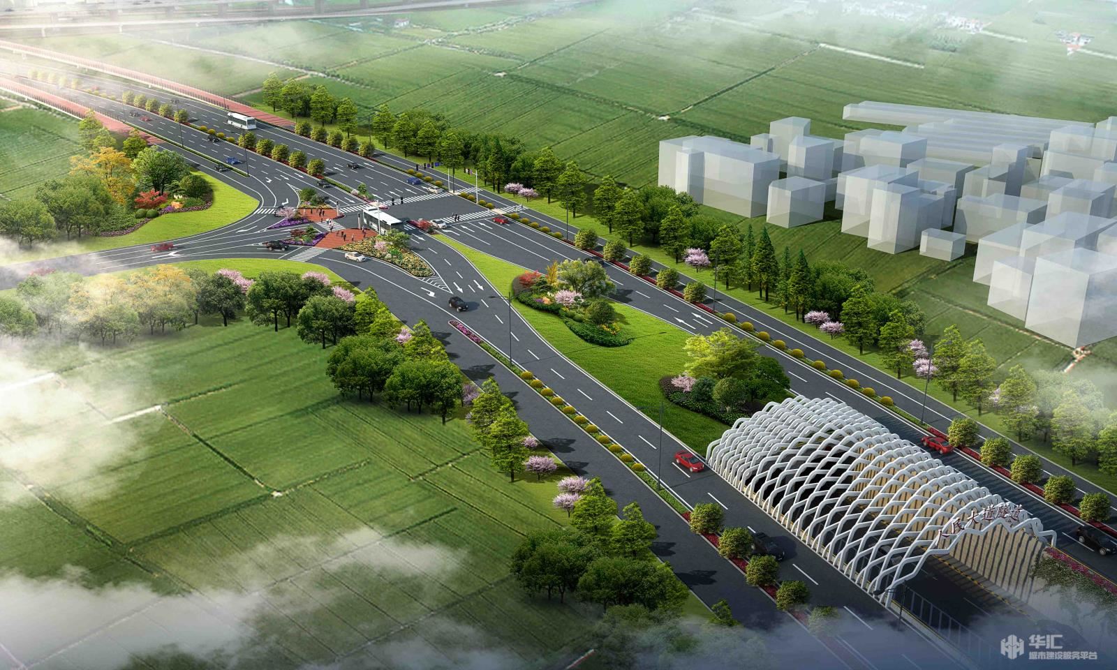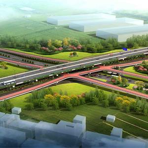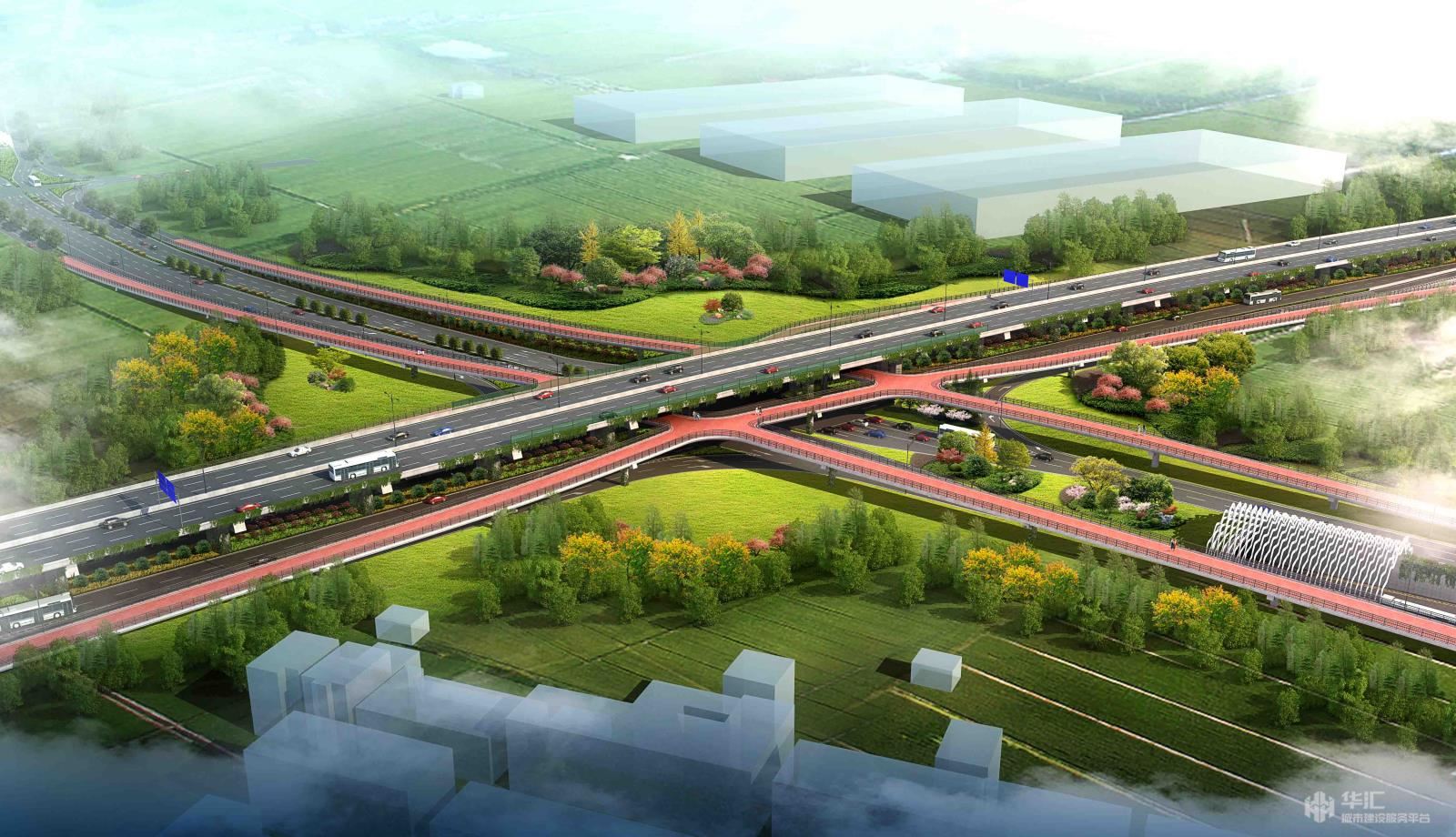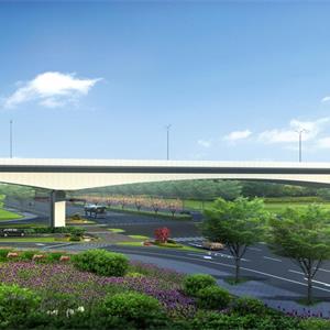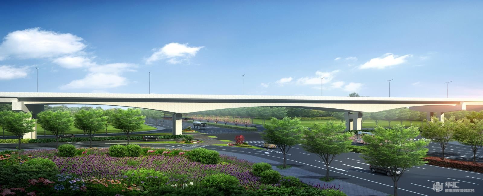 本工程主线南起人民大道以北(群贤路三期终点),以高架桥形式跨越科创岛区块,与五甲渡大桥南桥头相接,然后利用现状五甲渡大桥跨越曹娥江,止于江东北路以北,高架桥采用双向六车道一级公路标准(兼顾城市快速路功能),宽27 m,设计速度80km/h;地面道路采用双向四车道+辅道形式,城市主干路标准,设计速度60km/h;人民大道以北、规划创五路以北分别设置1对平行匝道,五甲渡大桥北侧设置互通式立体交叉,完善南北中心大道与江东北路的各方向顺接。道路全长3.84km,其中新建高架桥约2.55km。