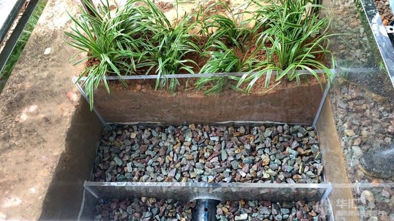 本项目通过采用不同的透水材料(透水沥青、透水混凝土、透水砖)、海绵设施(下凹绿地、雨水花园、植草沟、卵石槽、高位花坛、生态滤池),形成丰富多样的、高品质、高标准海绵城市校园,通过对海绵设施剖面展示,形成宣传和教育海绵城市概念的重要展示窗口;