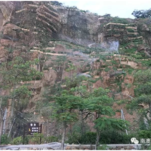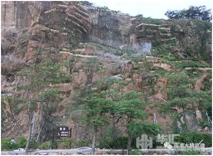 山体坡面面积9500多平方米,坡陡且垂直坡长近百米。山体修复方案要求较高(山体后面是黄花山国家森林公园)、施工技术复杂且难度较大。