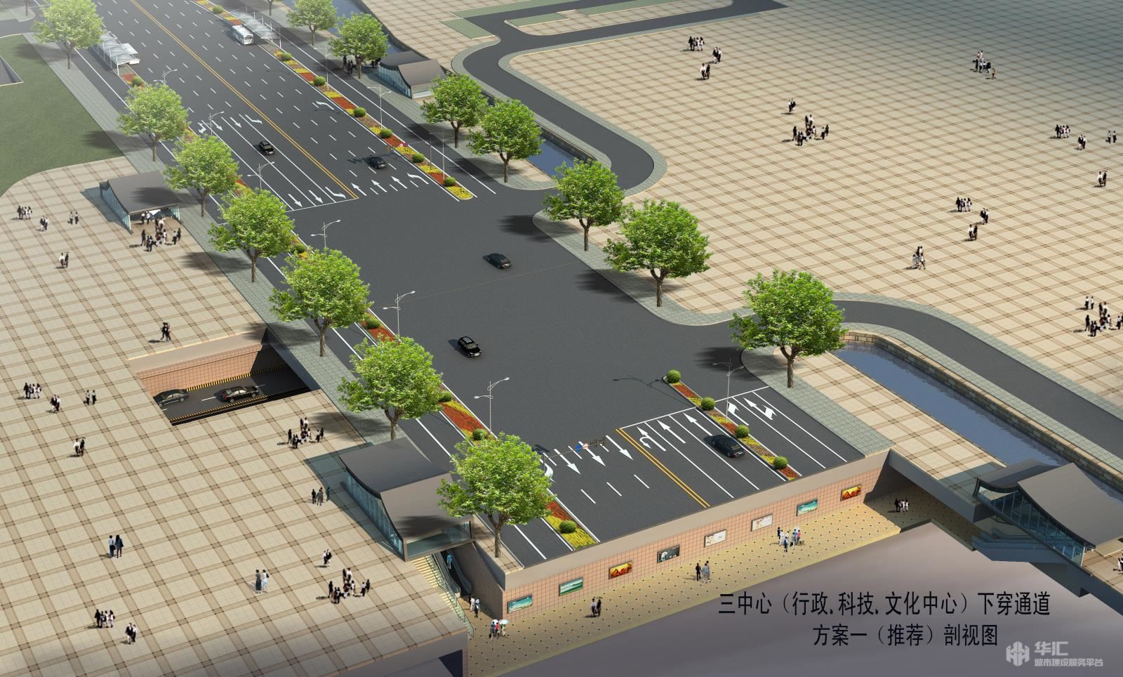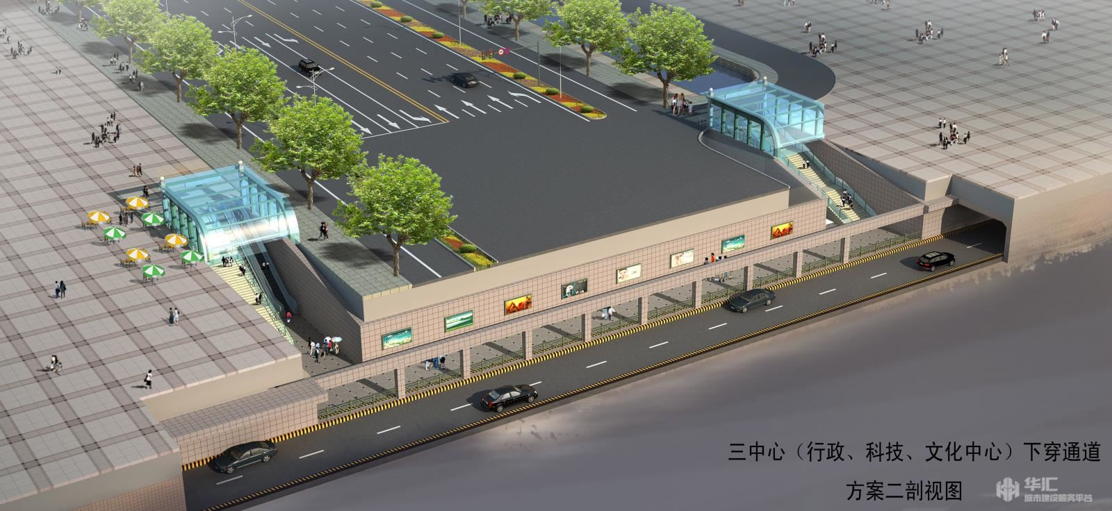 1、为确保道路管道埋深、行政中心入口处人工河标高等需求,贯穿三中心的地下通道设计中采用泡沫砼回填、硬质防水板使用、长距离植筋等技术措施较好的解决了平面标高、纵向坡差较大的难题。同时在人行通道入口处采用国际领先的倾斜式无障碍升降平台解决残疾人上下梯道问题,在绍兴属于首次采用。