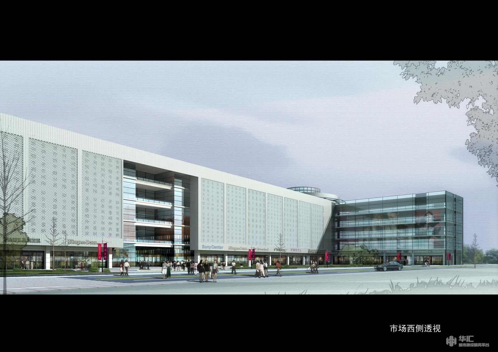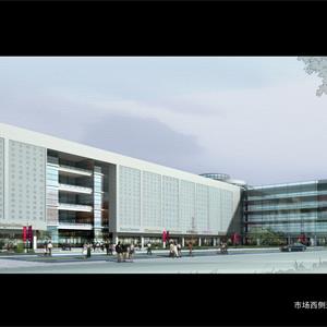 该工程分为二大功能区块:市场交易和市场配套用房。设计手法从简洁大气入手,以明快、确定的几何体型包容了一个丰富、现代的市场交易空间,力求体现科技严谨、稳重、创新,充满向上活力的价值观。项目形体采用大体块切割,材料上选用新颖的穿孔铝板,采光、遮阳、通风兼顾,稳重而不乏端庄,现代又不缺内涵。