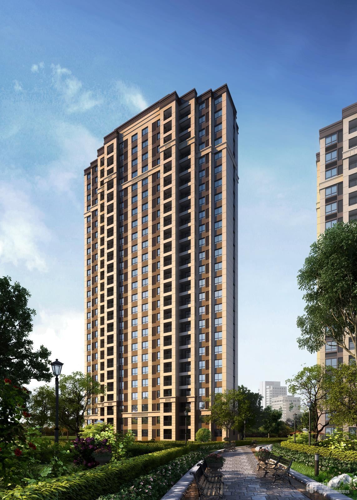 项目总建筑面积20.3万㎡,含新古典风格的高层住宅,及南加州风格的排屋、幼托配套等。