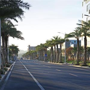 一路一树,一花一景,彰显珠海地域景观特色。每条道路尽可能体现不同的季相景观,将园区景观打造成四季有变化,季季有主题的总体景观风貌。春季的黄花风铃木景观带,夏季的凤凰木大道,秋季的落羽杉秋色景观带,冬季的银海枣景观大道,各具特色。多层次,多色彩,形成色彩丰富的景观林荫道。除各特色主题景观道路,多处局部打造棕榈类主题、落羽杉主题、鸡蛋花主题、红花羊蹄甲主题、龙船花主题等点状主题植物景观。