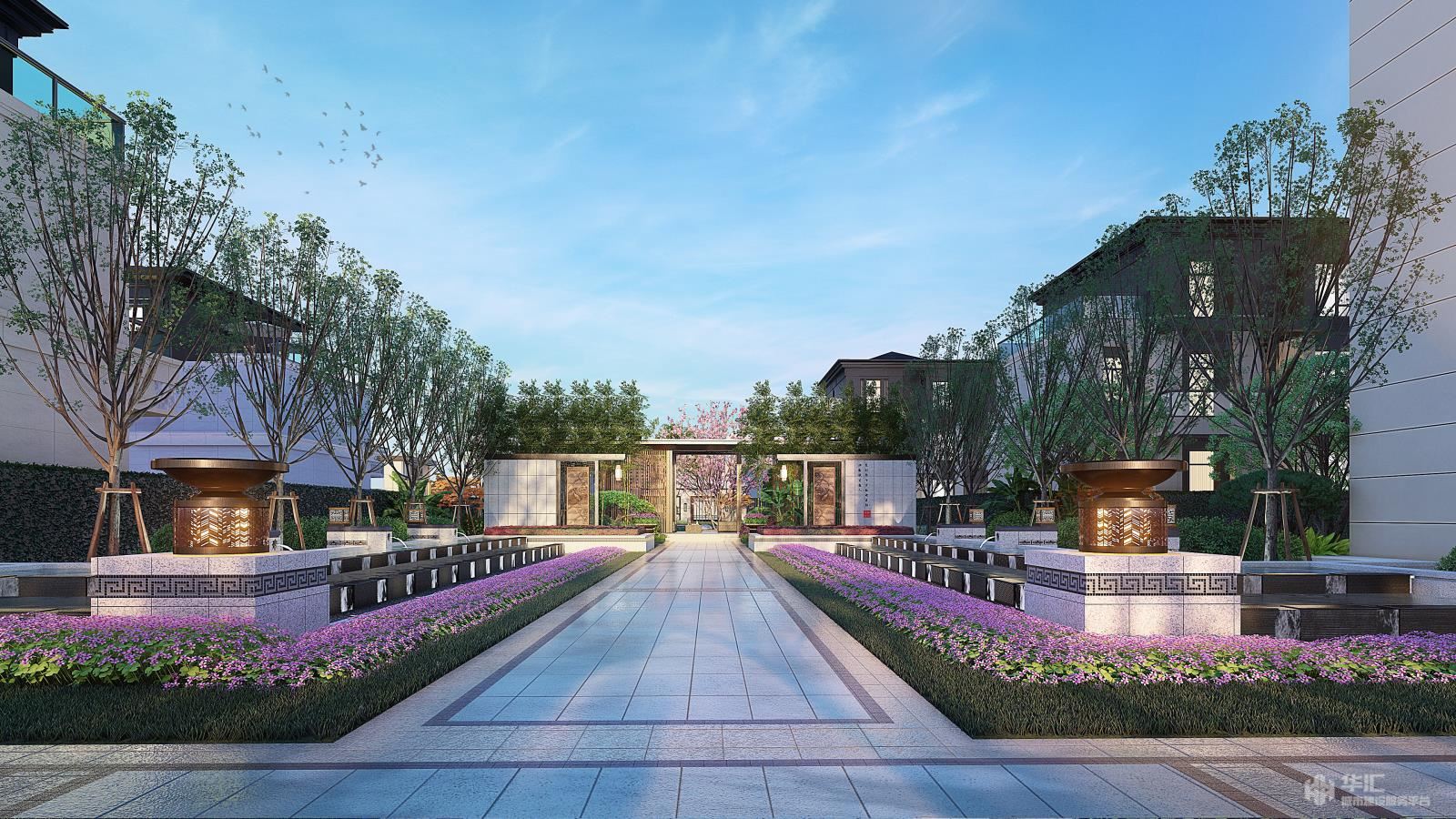 主要针对小区主入口,中心景观轴,高层宅间区进行重点设计,通过贯彻设计理念,采用新中式的设计手法对其中的小品,构筑物进行精细化打造,以《桃花源记》为线索,将主要场景空间植入故事性,使人“人在园中走,如见桃花源”。
