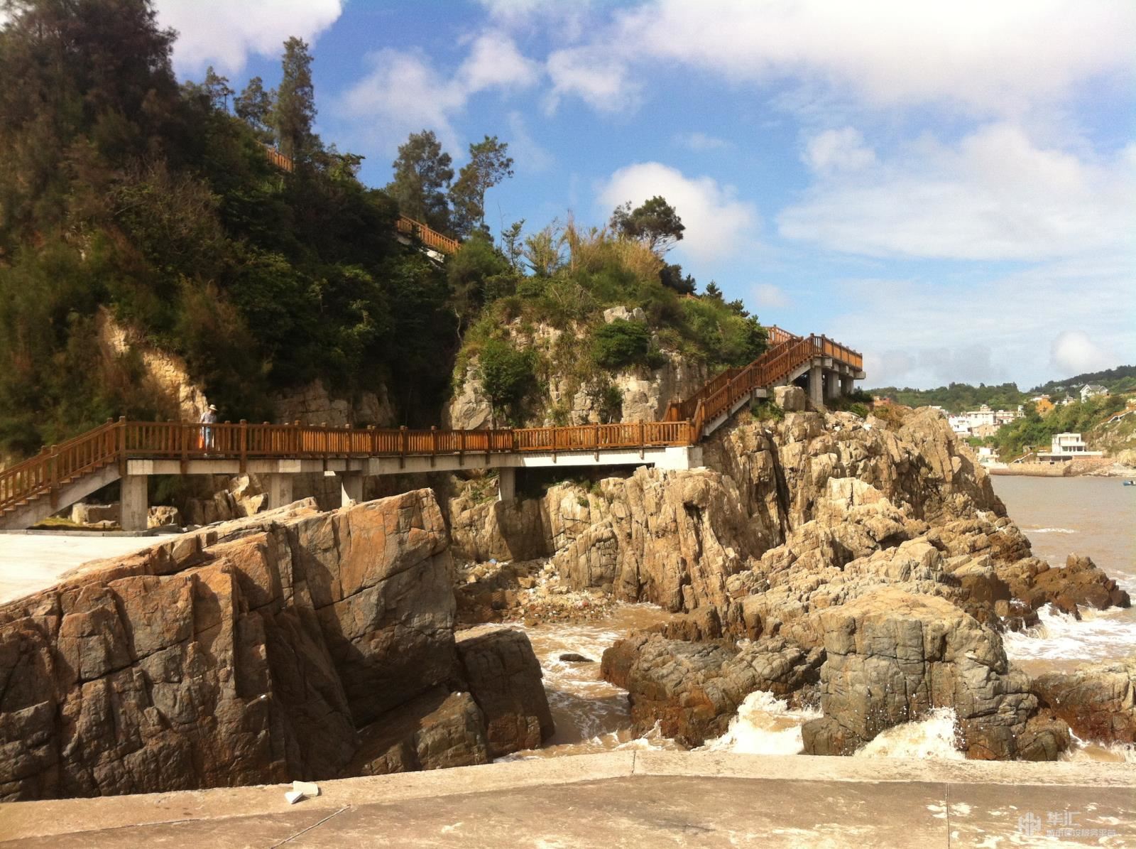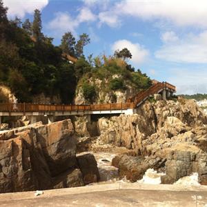 洞头县连港蓝色海岸带工程(一期),西起环岛路半屏大桥,东至东岙古渔村码头,主要包括主入口广场、1#栈道(停车场至东岙村海鲜大排档)、次入口广场、2#栈道(次入口广场至二期起点)四大块内容,设计全线总长约1200米。洞头县连港蓝色海岸带一期工程主要包括主入口广场、1#栈道(停车场至东岙村海鲜大排档)、次入口广场、2#栈道(次入口广场至二期起点)及场外景观工程所配套的结构、水电工程。