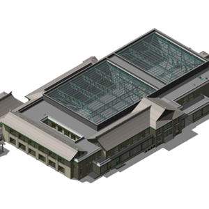 本项目主要由会议宴会区、客房区、贵宾楼、国宾楼及大地下室组成。BIM设计主要包含全专业BIM模型创建、碰撞检查及管综优化、机房深化、内装优化、屋面排瓦、可视化漫游优化建筑空间等工作。通过BIM技术的应用,解决了各专业的碰撞冲突问题,从而保证了施工高效进行。