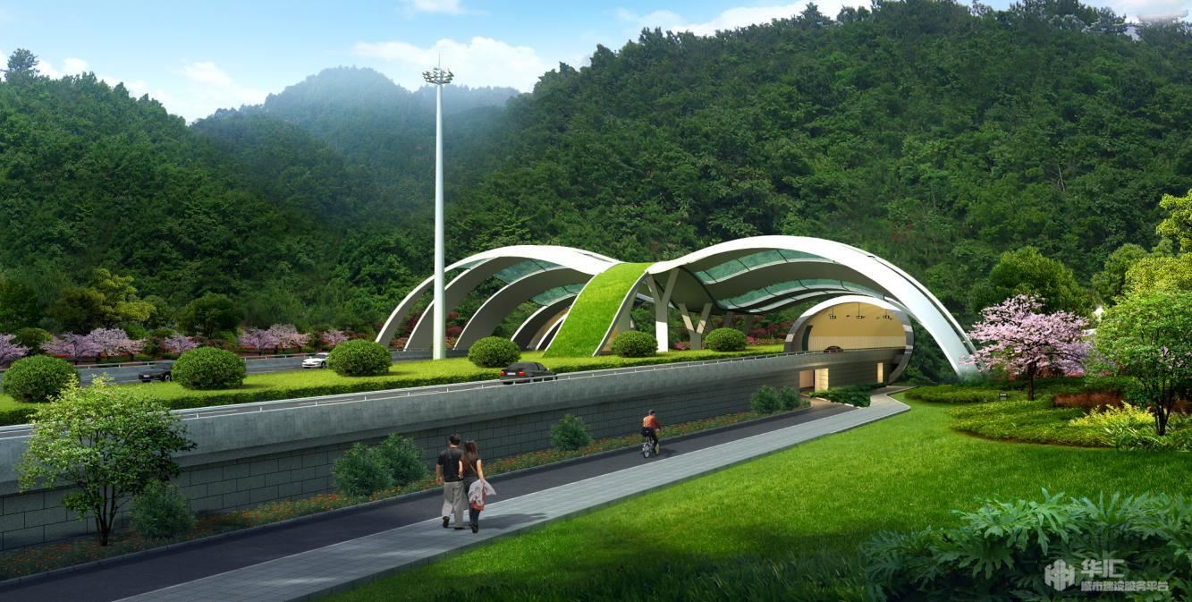 环山北路作为温州龙湾区东西走向的城市主干路,道路标准宽度为50米。项目重点为大罗山隧道工程,是全国首座陆地上的双层隧道,大罗山隧道最大埋深170m。自隧道进口~中部~隧道出口的线间距分别为34.8m~45.8m~45.8m,左右隧道平均全长为1395米,隧道衬砌内轮廓采用四心圆卵形曲边墙结构,为上下双层结构隧道,衬砌内轮廓高11.19m,宽14.52m。