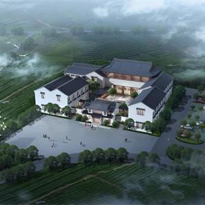 项目位于绍兴市柯桥区,平阳寺南侧,西、南两侧为现状农田,北侧为通往平阳寺的道路,东侧为现状小路,北侧与平阳寺隔路相望。项目总征地面积8255平方米,建筑面积5587平方米,内设游客中心、茶叶研究中心和茶文化博物馆,以茶文化展示园的规划设计要求进行建设和装修布展,为日铸茶文化展示、宣传交流、日铸茶品牌管理服务及柯桥日铸茶研究中心日常的办公和研究提供场所。