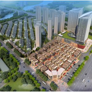 引入现代风格建筑,创造出“大气、时尚”的建筑风格, 符合高品质商业街特质,力图本项目成为城市界面的一个亮点。 紧扣表现“高尚生活文化”主题,对整个商业片区的色彩、造型进行分层次设计。