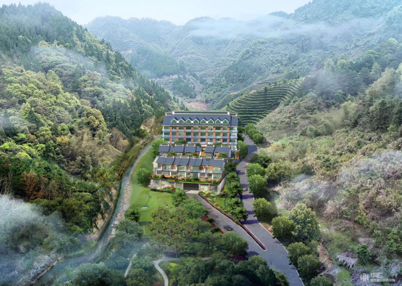 场地原为知青点,设计将酒店高端区、中端区分离,结合室外庭院、婚宴场地融为一体。