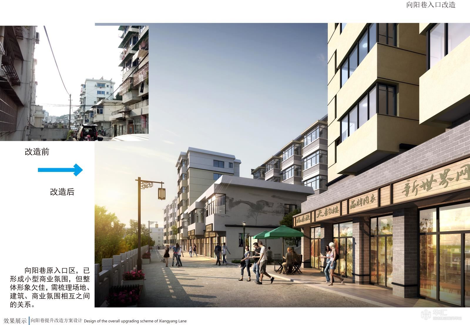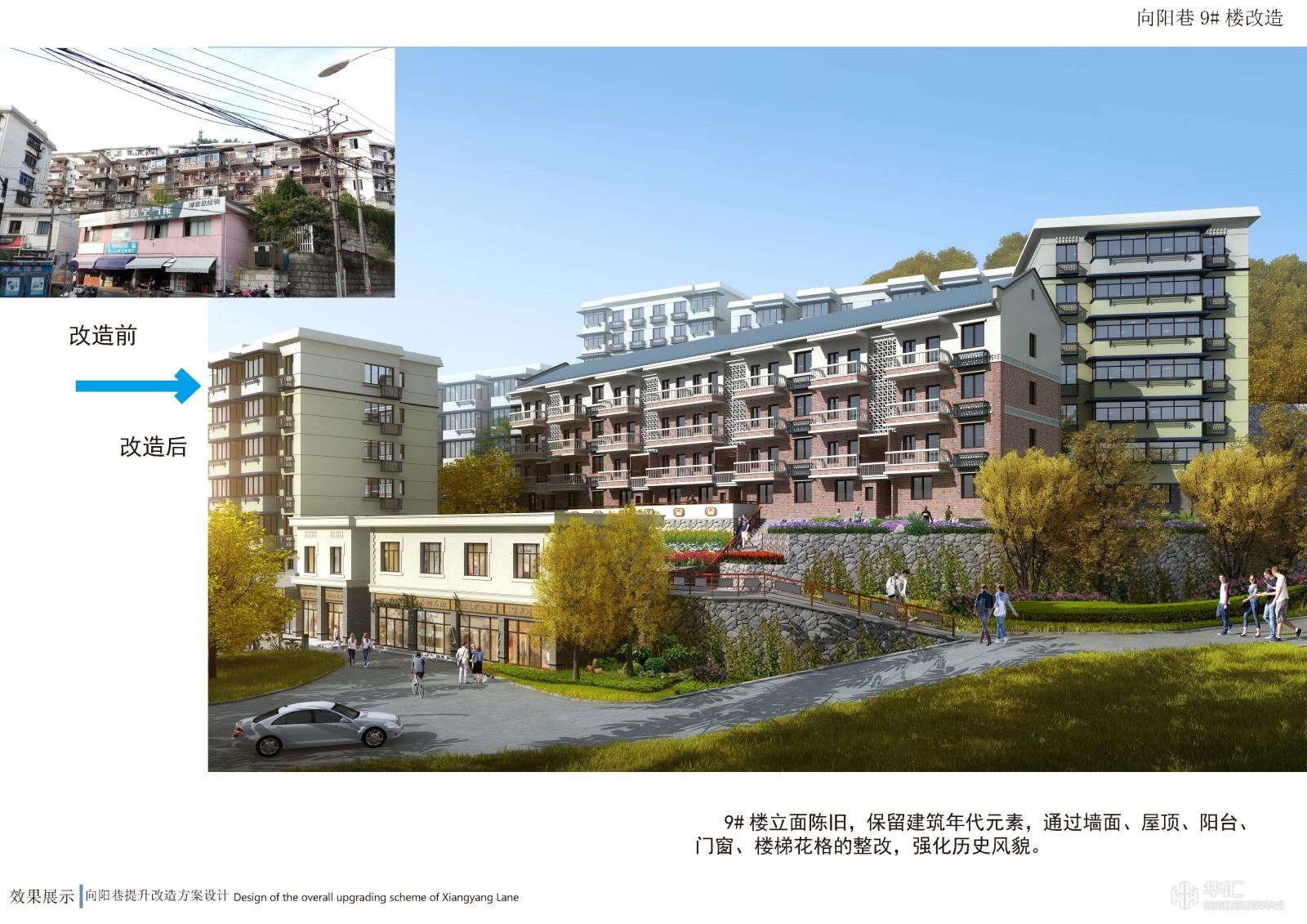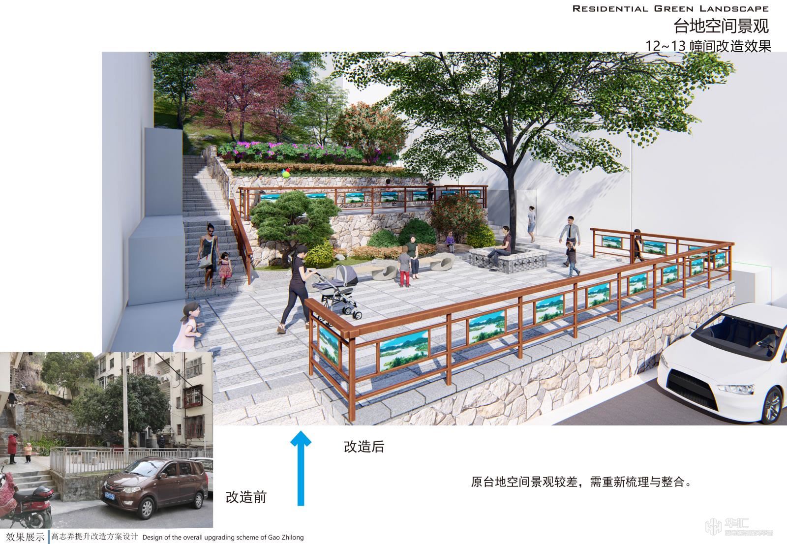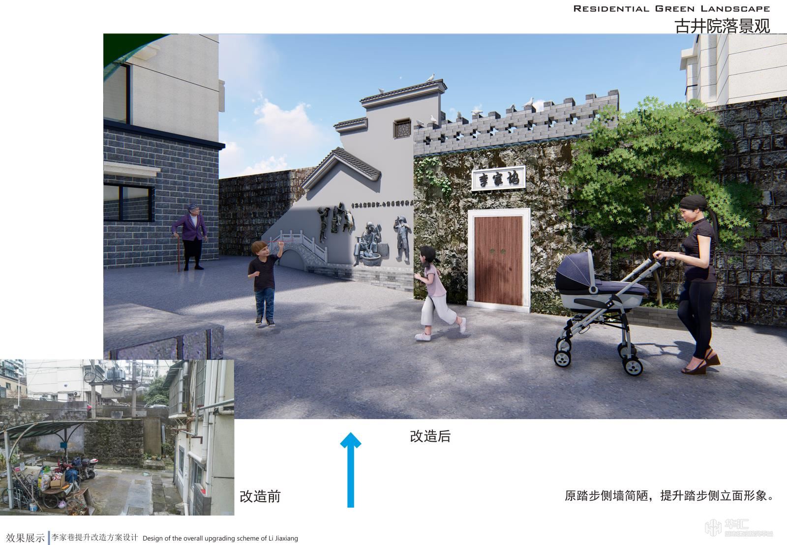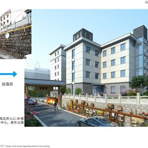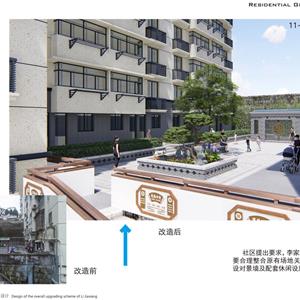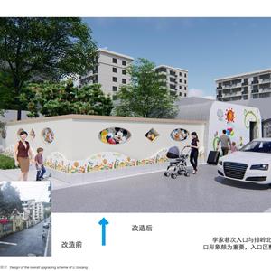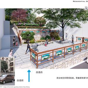 项目以新安江电站移民历史为元素,结合小区现状恢复历史古韵,小区节点景观与道路、停车位、户外活动场地相结合,提升小区品味
