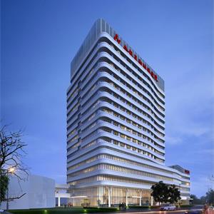 杭州市余杭区妇幼保健院位于余杭区南苑街道人民大道359号,是一所集医疗与保健于一体的三级乙等妇女儿童专科医院,本方案新建病房大楼建筑面积39463平方米,(包含地下室6868平方米),主楼17层,建筑高度69.84m。床位数472张,远期加上预留的床位医院的总床位超过500张,拟争创三甲医院。方案从妇女儿童优柔的性格中寻找灵感,将主楼进行了圆角处理,且通过体块的组合融入了流线形的元素,体现了妇保院柔美的特性,潜意识中消除了妇女儿童对医院的恐惧感,增强了医院的亲和力。