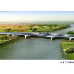 越兴路立交上跨萧曹古运河、104国道、萧甬铁路、杭甬运河,建设条件限制因素多。本立交在局促条件下设置两条右转匝道,立交主线上跨杭甬运河(Ⅲ级航道)采 用60+100+60米变截面连续箱梁。