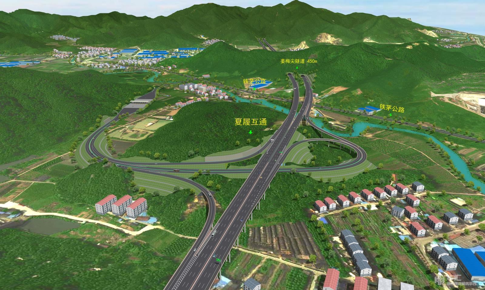 本项目位于山区,桥隧占比大,张家畈-联众复合枢纽涉及到原有互通改造、匝道拼宽及多次上跨杭金衢高速公路施工。我院参与的张家畈-联众复合枢纽、夏履互通桥梁设计采用预应力连续梁结构,可以施工期间不中断交通。互通枢纽的高填深挖路基采用了预应力锚杆和高次団粒防护形式结构,绿化防护效果良好。
