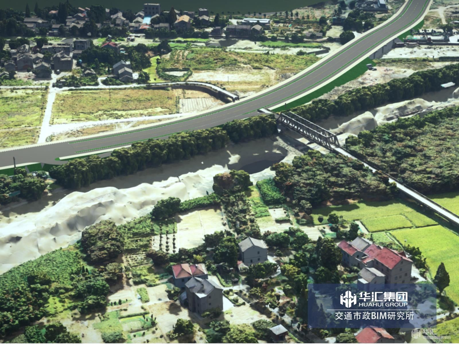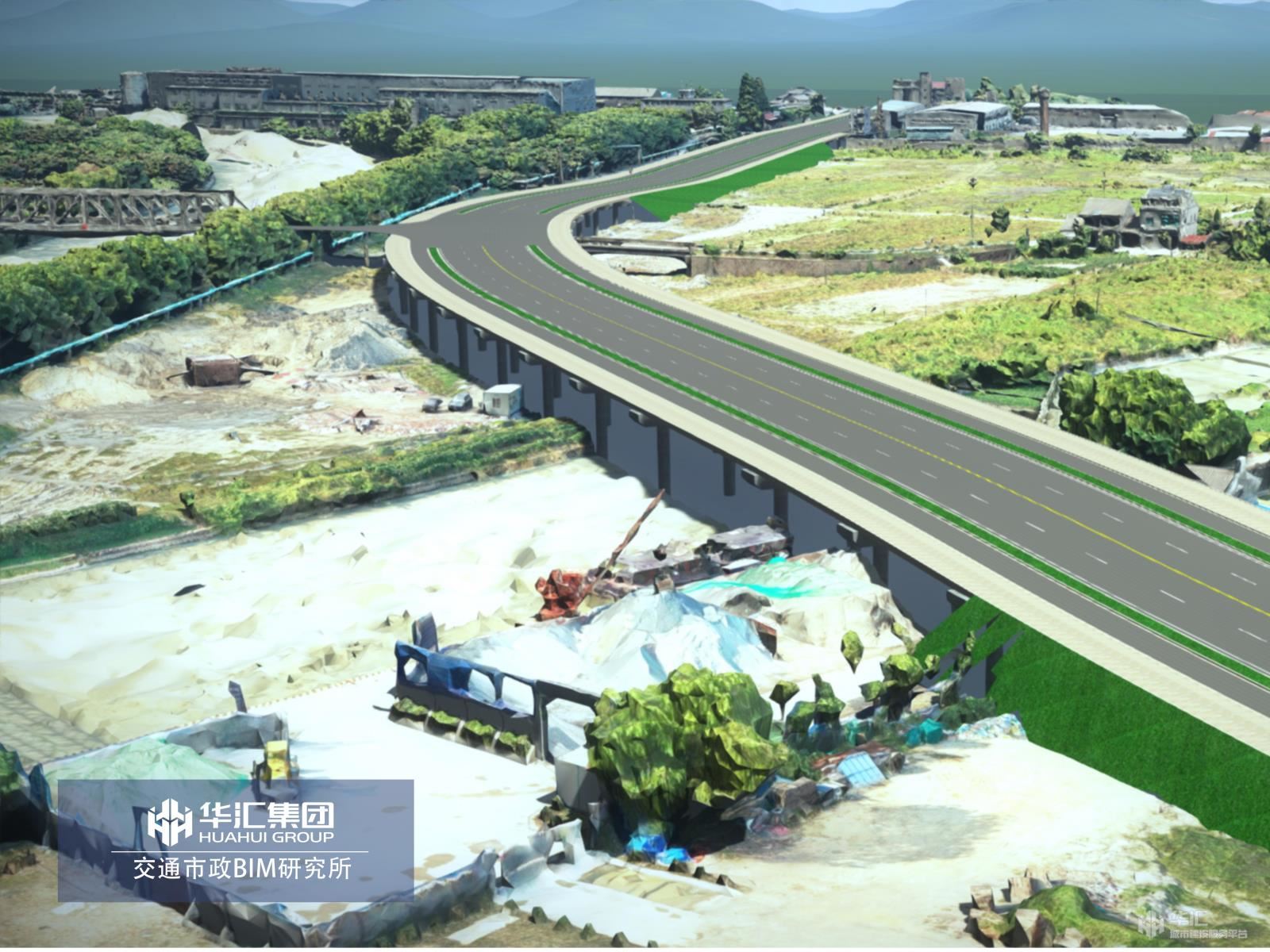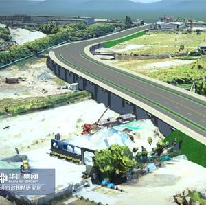 本项目BIM方面在前期对实地进行了无人机测绘航拍,并且在多个关节节点放置了控制点,并通过相应设备获取了控制点GIS信息。在无人机作业中,为提高模型精度,此次将无人机飞行高度控制在120M,航向重叠率90%,旁向重叠率80%,总共获取了2000多张航拍图片,作为实景重建的基础数据。将图片以及控制点数据输入至ContextCapture Center中后,经过三天的模型计算,并对获取的GIS高程信息进行比对,平均误差在3CM左右.基于实景模型,提取了地面高程DTM数据作为项目基础模型,并在此基础上采用CNCCBIM OpenRoads和OpenBridge Modeler进行了道路和桥梁相应方案设计用于项目汇报。
