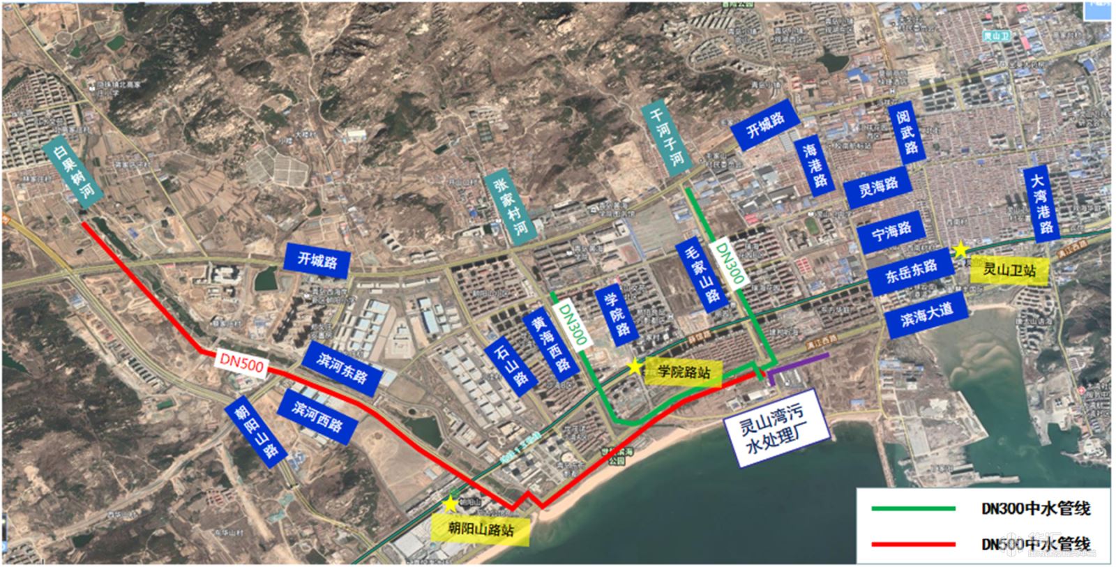 为满足灵山卫污水厂二期扩建工程项目要求,需对灵山卫污水厂二期扩建场外配电及管网配套工程进行设计。工程位于滨海大道(毛家山路—滨河西路),干河子河、陈家村河河白果树河(开城路—滨海大道)段,主要建设内容包括:新建中水管线10.5km,10KV高压电力管线。新建中水管线共分为三个部分,分别为干河子河、陈家村河和白果树河进行补水。其中干河子河和陈家村和补水管线管径为DN300,白果树河补水管线管径为DN500,管线总长度约10.5km。新建管线在河道设置1~2处补水点,并在交叉路口预留远期中水接入,和市政苗木和道路养护取水点,详见管线平面图。 本项目估算总投资约为2350万元。其中建安工程费用约为2102万元,征地费0万元,工程建设其他费约为201.49万元,基本预备费约为46.07万元。