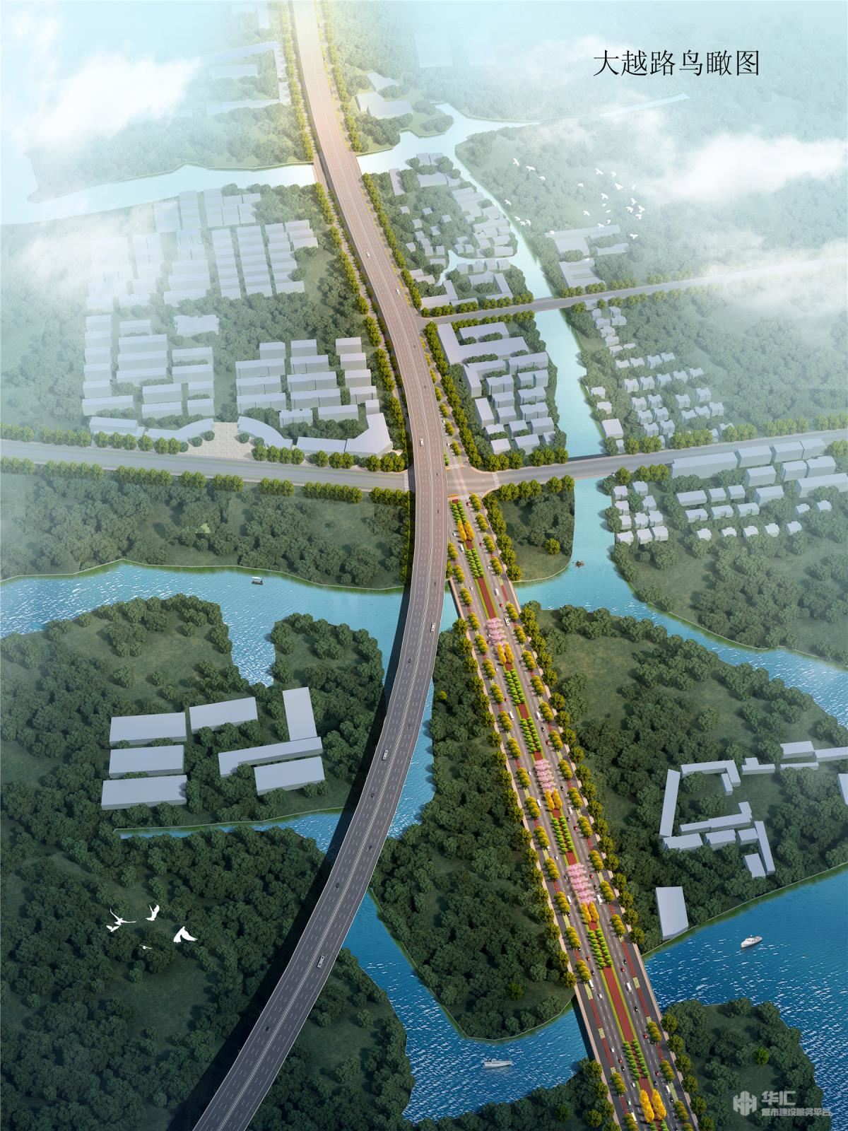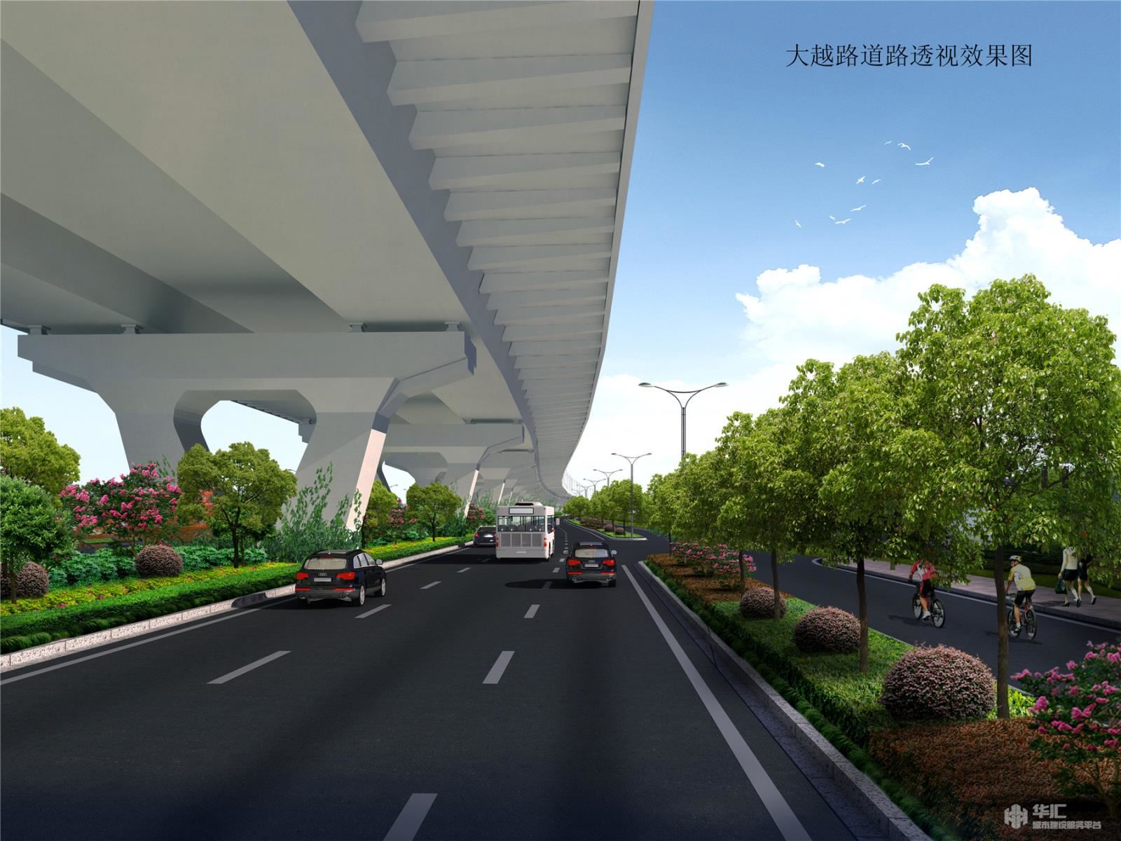 大越路为绍齐公路(又名尹大线)镜湖新区段,位于镜湖新区西侧,北起于越路(柯袍线),南至凤林西路,全长约6.94km,道路标准红线宽60 米。其中规划绸缎路至环南路(桩号K0+425-K6+072)约5.65 公里主路两侧各3m 分隔带、6.5m辅道、2.5m 人行道(两侧各12m 宽度范围为本工程范围)由本工程实施,中间36m(12m 中央绿化带及两侧各12m 主车道)宽度范围由绍齐公路还建道路工程(对应桩号K4+650-K10+300)实施;其余首尾两端共约1.29 公里按60 米全宽建设。
