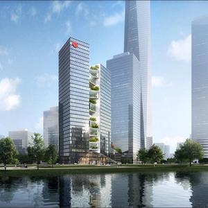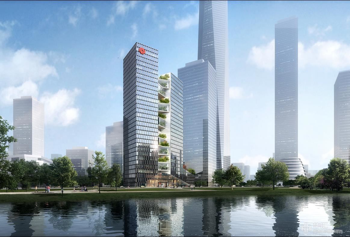 本案提取了古巴比伦空中花园中立体造园的手法,通过结合项目周边的景观资源,创造了裙房的立体屋顶花园,办公塔楼内部室内外相连通的垂直绿化花园,以及塔楼顶部的空中花园,形成了三位一体,自下而上的城市立体花园。建筑体量在设计上着重于释放结构美学,形成动态的视觉焦点,使建筑不同方向的立面都呈现出最佳的欣赏效果,避免了一般办公建筑四个立面的简单重复之感。