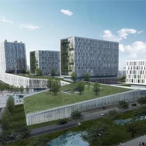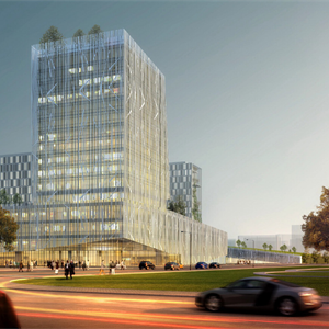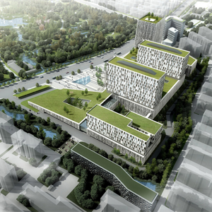 项目详情:本方案的设计理念中,对建筑占有的原地坪绿色自然空间进行有机解构、重组,结合不同的建筑体量,通过屋顶植被,竖向立体绿化,室内外庭院景观的交融,同时采用园林借景、对景的手法,引入植物园优美的风景,使医疗建筑空间与绿色景观再次编织成升腾而起的第二绿色地坪。贯穿于整个基地的绿色立体空间宛如一张巨大的悬浮城市绿毯,覆盖、穿行于城市建筑空间之中,与周边居住空间进行有机的对话和巧妙的融合。