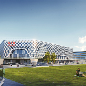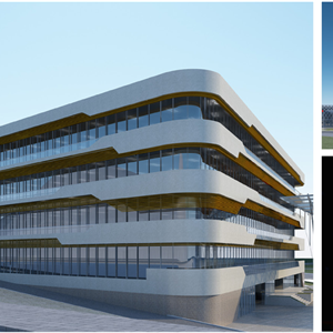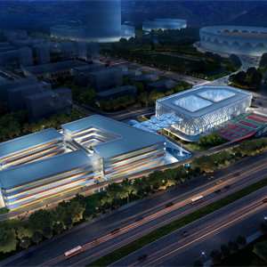造型轻盈的体育中心犹如漂浮于跑道上的象征体育精神的“白色圣殿”,结合参数化设计,根据不同朝向的日照和遮阳要求,不同的立面变幻出各异的图案,疏密有致,增添了建筑的动感和平衡感。教学及生活区的建筑就如艺术体操运动员手中舞动的彩带瞬间在空中划出一条条多彩的线条,环绕着我们的建筑,表现出艺术和运动完美的结合。