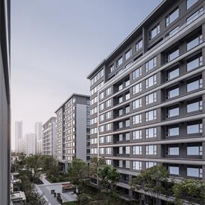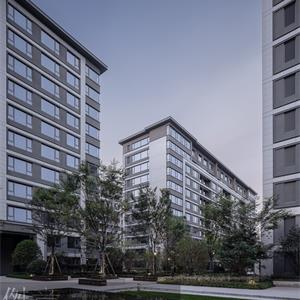 本地块内包括24栋11层小高层住宅、8栋16-26层高层住宅以及1栋底层配套用房。地块南侧住宅的一层设置沿街配套用房。地下室一层为机动车库和非机动车库。住区新中式风格,住宅社区通过高层和小高层的分区布置,形成高低有序的,中轴对称布局的空间形态和城市界面。小高层住宅板式住宅为主,形成大小有序的庭院空间。重点规划优质居住空间环境,强调整体性和序列感,注重城市界面,提升各个功能空间的整体和谐性及景观结构的有机融合。