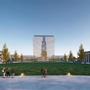 校园中心,引水入园,象征金融。打破传统校园追求对称、均质的设计理念,筑岛立院,打造建筑与环境相交融的校园核心。