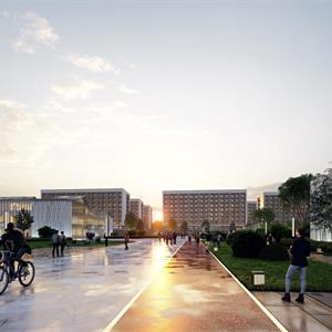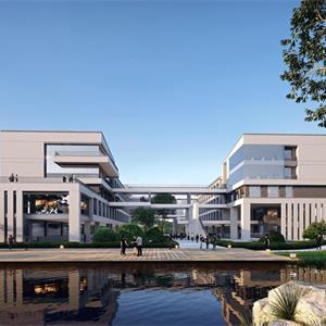 项目位于浙江省绍兴市滨海新区江滨区块“东城”区域,选址位于新城大道以西,开元东路以北,友谊河塘路以东,七六丘北塘河以南。总用地规模约39.56公顷,用地地势平坦,建设条件良好,交通与景观资源俱佳。新校园总投资21亿,规划建筑面积24万平方米,远期规划在校生8000人。
