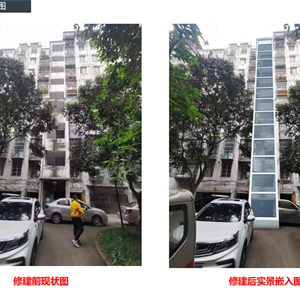 本工程位于射洪市阳湖家园 2 栋 2 单元,在楼梯外侧新增加装电梯工程,新增电梯占地面积 4.56 ㎡,总建筑面积 55.8 ㎡,提升高度 22.5m,基坑深度 1.5m,冲顶高度 4.5m,为无机房电梯。该电梯电梯开门楼层:1 层、4.5 层、6.5 层、7.5 层。