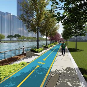 其次2021年行动计划∶嫩江路以南继续拓展,以新桥大街为界,建设内容为改建绿道8条和新建1座人行景观桥(跨长江路桥)。