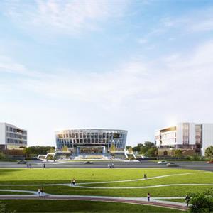 本项目选址于金华市多湖中央商务区,项目总用地面积约267655平方米,原有建筑面积127894.35平方米,扩建建筑面积约118000平方米,其中地下建筑面积27400平方米,地上建筑面积90600平方米。