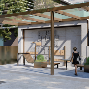 嘉兴新港路美丽街区项目位于虹口区嘉兴街道环和平公园区域设计针对新港路、大连路四平路、 天宝路、畅心园路及天镇路,共六条城市干道及次干道构成的街区。以和平公园为中心,以新港路,天宝路为主要设计轴线,利用碎片空间沿街设置口 袋公园,街边绿地,人行休憩空间。利用原本畅心园路与大连路口街角绿地规划口袋公园; 利用天宝路加油站绿地与新港幼儿园入口绿地规划街角绿地;利用榆兰新村与远洋小区前 绿化空间规划全新的人行休憩空间。对沿店招、铺装及部分建筑立面进行改造,配合更新 后的绿化空间,打造全新的街区风貌。