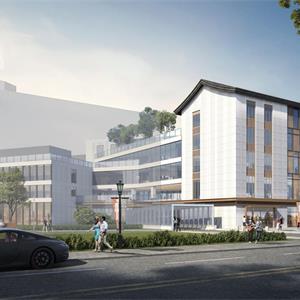 项目用地不规整且位于住宅小区内部,既要保持与周边住宅建筑风格保持一致,又不能对周边住宅产生影响,尤其是日照,整个项目用地十分紧凑,又要满足机动车停车要求及绿地率要求。方案通过建筑层高错落来避免对周边住宅建筑日照影响,通过屋顶绿化来解决绿化率要求。邻里中心内部功能较多,含超市、食堂、社区中心、共享空间等,方案设计过程中充分考虑各功能之间的联系性与独立性,合理设置各个功能的楼层分布及竖向交通组织,地下室采用最经济的布局方式,满足整个项目配建要求。