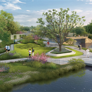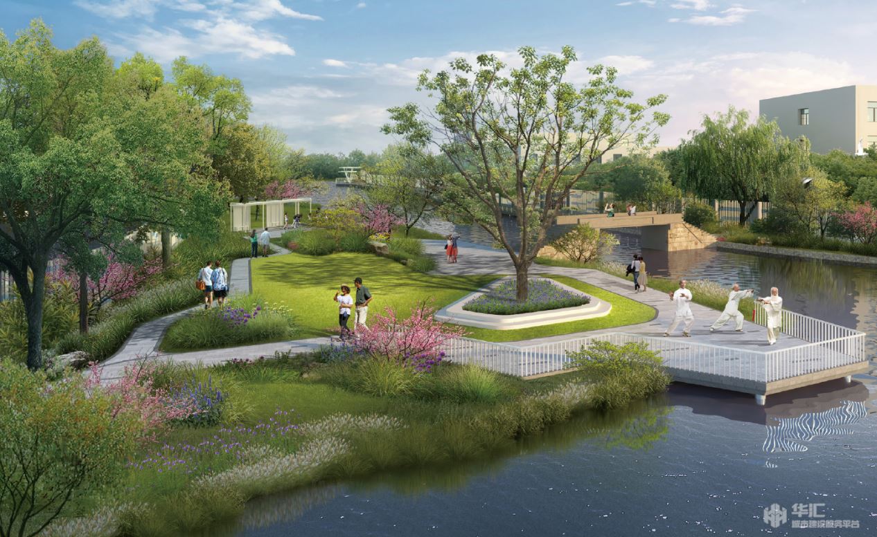 项目在景观河段提升中融入创新设计,强化产业园区特质和各景观节点的空间联系,滨水空间、公园、绿地的组合布局,形成了协调并具有鲜明特点的区域产业风貌。设计也十分注重空间景观绿道的连续性,致力打造统一整体的高新产业园滨河文化景观带。滨河景观绿道空间设计,迎合周边产业和人群,采用流线型的设计手法,为周边人群提供了滨河漫游、互动健身和科技观光三种不同的出行方式,让人们体会滨河景观带来的自然感受的同时,为滨河景观绿道带来络绎不绝的能量与人气,也打造了具有归属感的景观空间,对美化区域印象起到了决定性作用。项目还融入海绵城市设计,力求从源头上减少径流、净化初雨污染。 为擦亮集成电路产业园、打造时代动脉新空间书写了华汇担当。