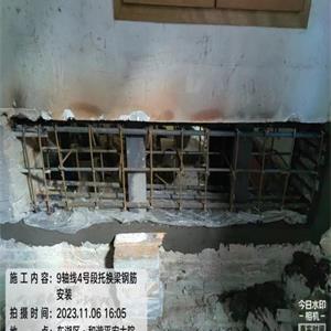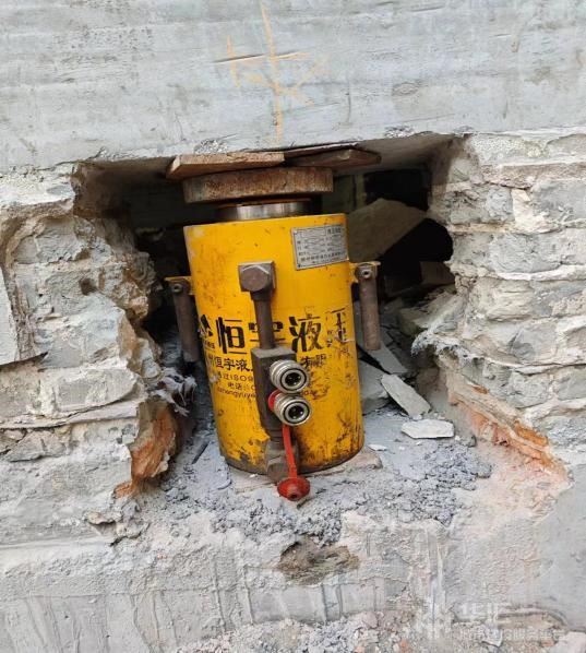 本项目为百花洲31号大院位于南昌市东湖区百花洲路上,该院内第二栋,宿舍楼(54套单元楼)建造时间1976年,结构类型为地上四层砖混结构,结构楼板为预制空心板。该建筑平面布置呈L形,尺寸约43.7米*10.2米*45.1米*10.2米,东面房屋沿街靠近东湖,仅8米左右间距。该建筑的基础形式东面房屋为整板基础,南面房屋为条形基础。该建筑于2008年由南昌市房产管理局出具危险房屋鉴定报告,经鉴定该房屋危险等级为C级并建议进行加固或拆除,现按甲方要求对其进行加固改造设计。我方设计施工方案主要工艺包括①上部结构节点增设构造柱②基础新增承台及连梁③增设锚杆静压桩④顶升纠偏。