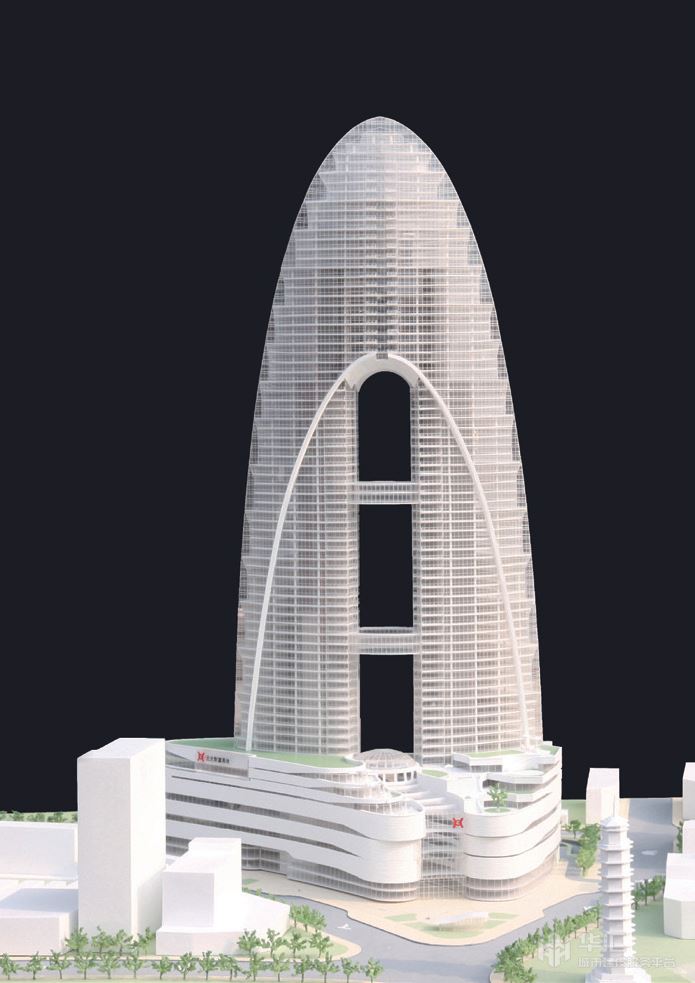 项目详情:方案设计的概念为“华夏之门——郑州的门户”,传承着历史的光辉和未来的辉煌,寓意着华夏文明的复兴及传承。商业结合中原地区悠久的历史文化布置商业主题中心。树木、瀑布、连廊形成一条贯穿东西的商业流线和视线通廊。塔楼部分设计为独立的两栋塔楼,总高度 339 米,层数 72 层,到 53 层通过钢结构相连接,跨度为 26 米。于拱门两侧放置景观高速电梯直达观光层和空中花园。结合塔楼的层层收进和功能的组织,核心筒的布置做到经济、合理、效率。